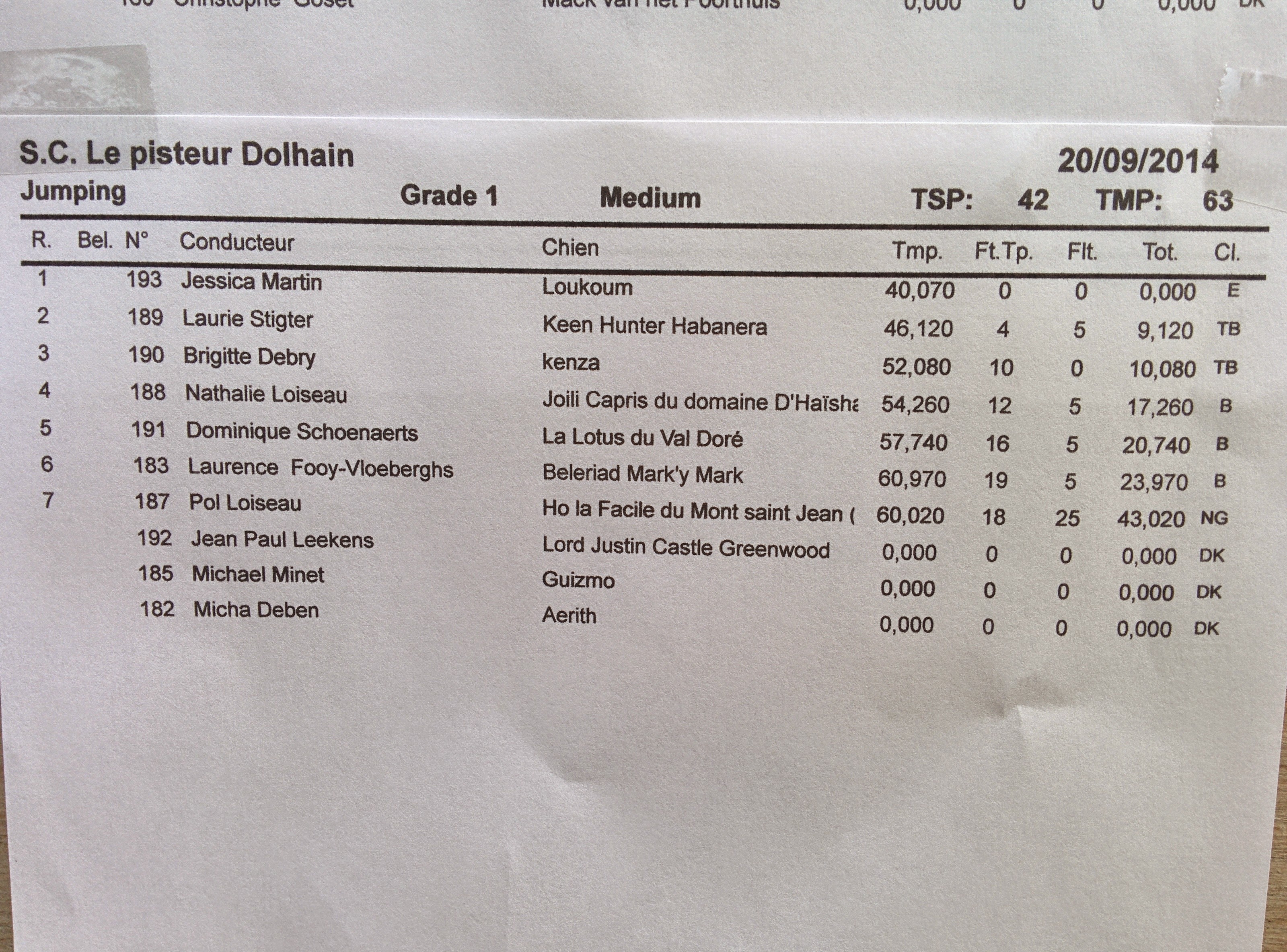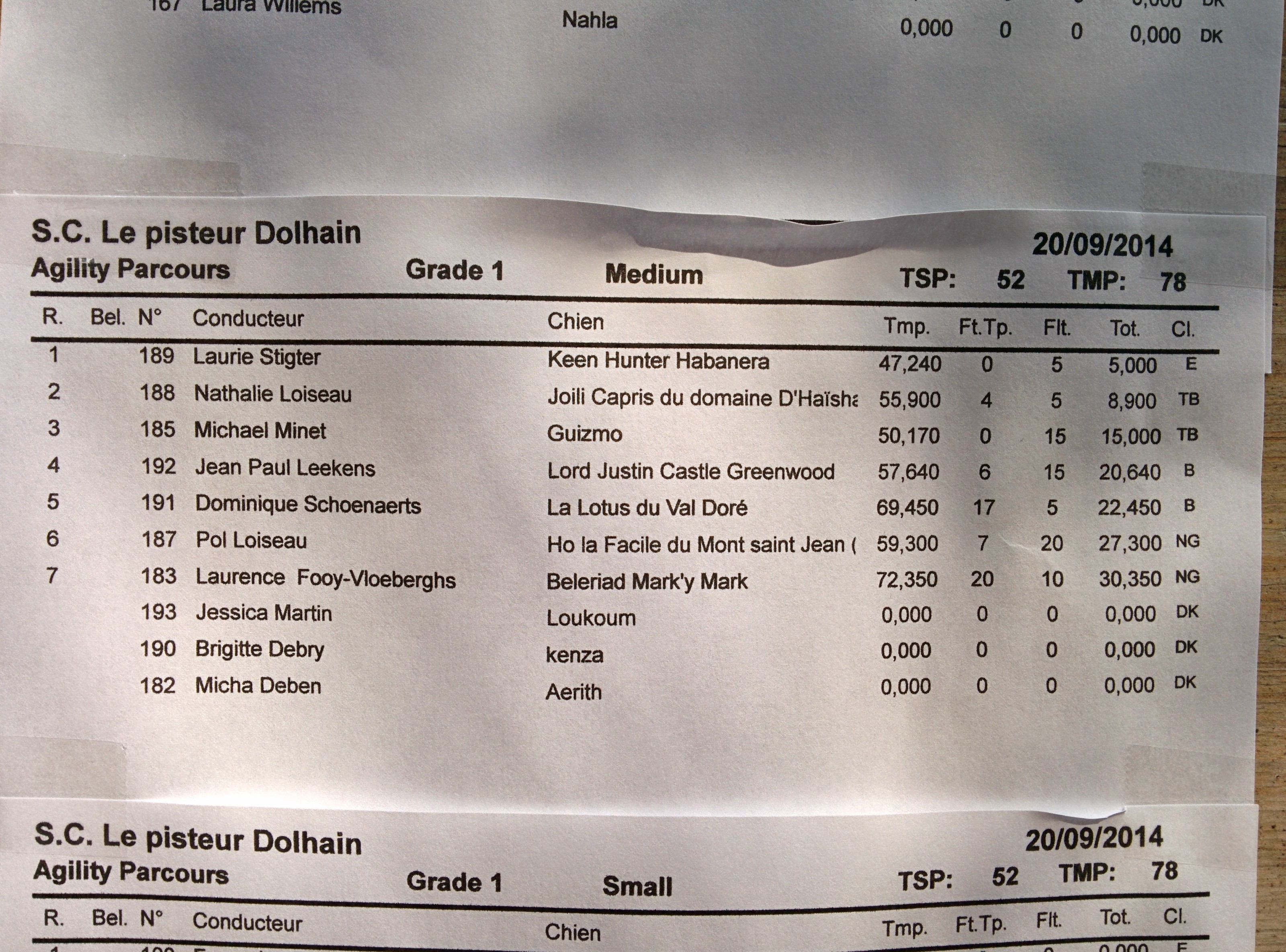 Agility: 1ère place!! (une faute de contact passerelle donc pas de signature)