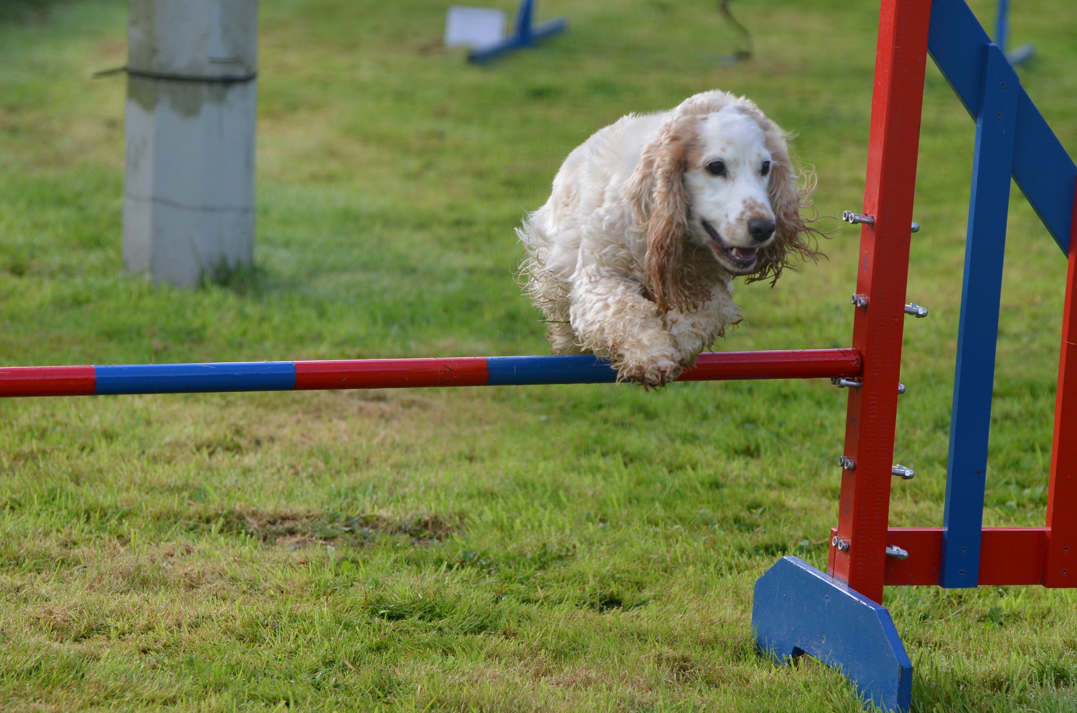 On commence par l’agility, parcours en zig-zag assez facile, juste l’entrée de slalom assez compliquée et un pneu où je ne suis pas sûre qu’elle le prenne! Je me dis que je veux miser sur la vitesse, tant pis pour les fautes car je n’ai pas envie de perdre cette nouvelle motivation que Nera à découvert!